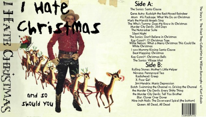 so basically the theme is that one side is christmas tunes I found in my collection, the ones without names are strange records that i came across in the garage that have no real signifigance. the b si …